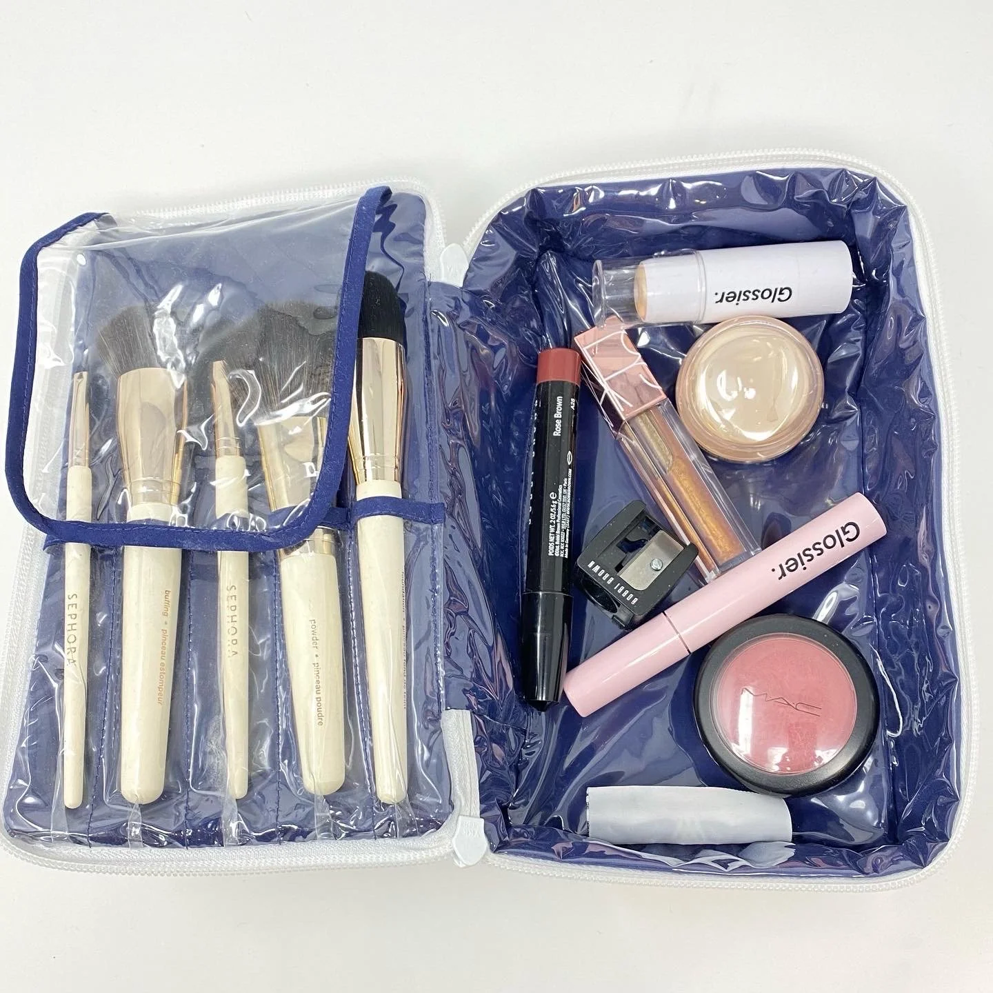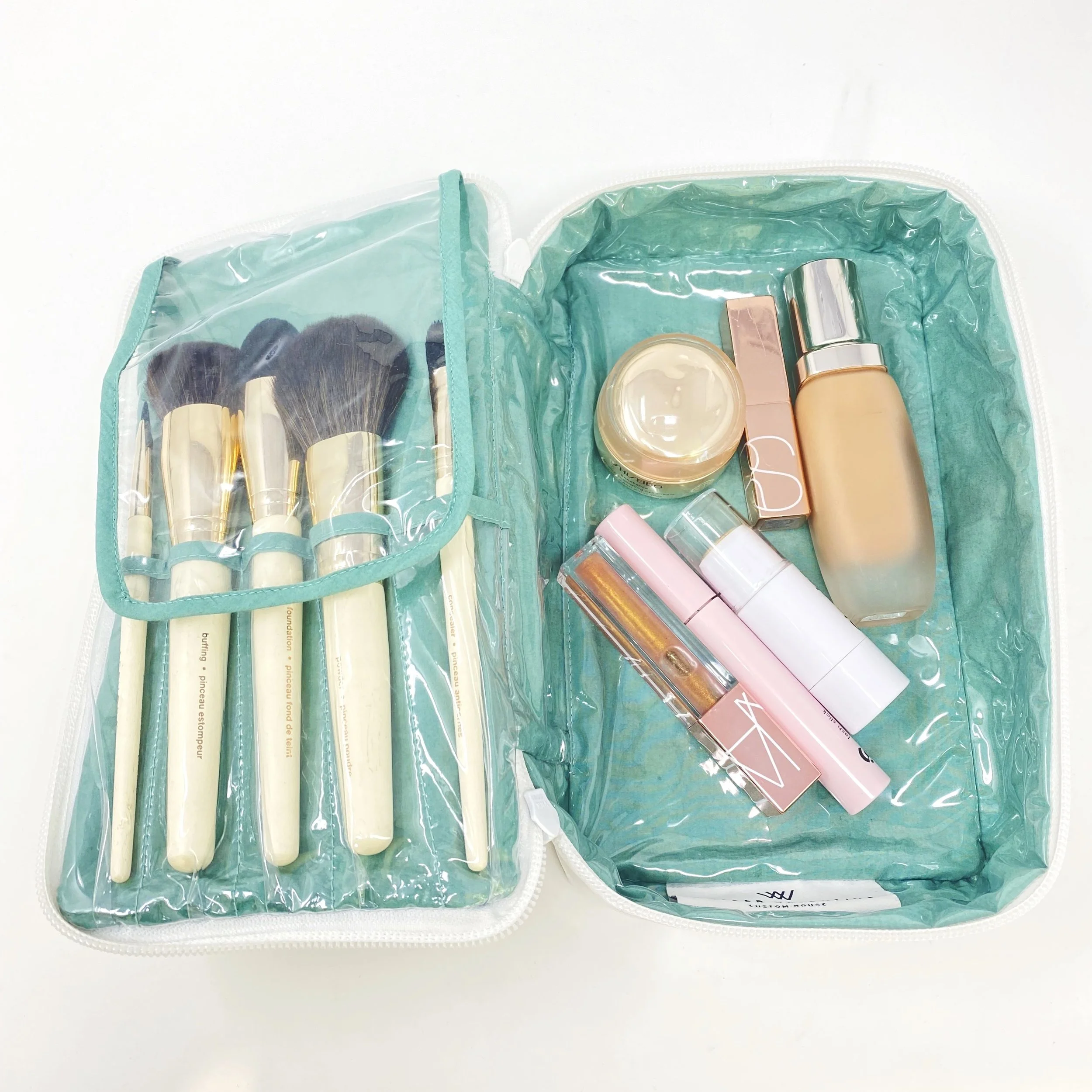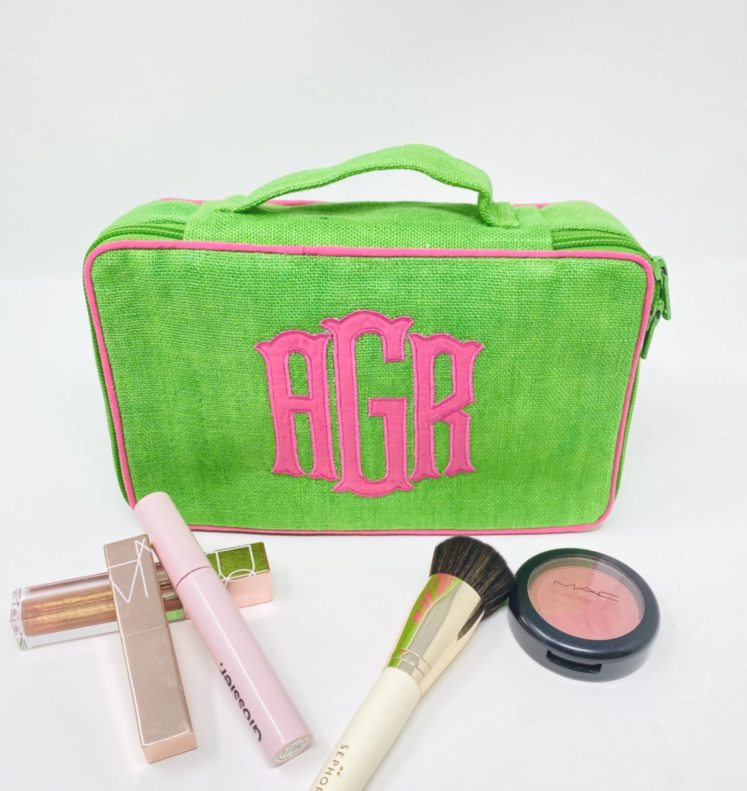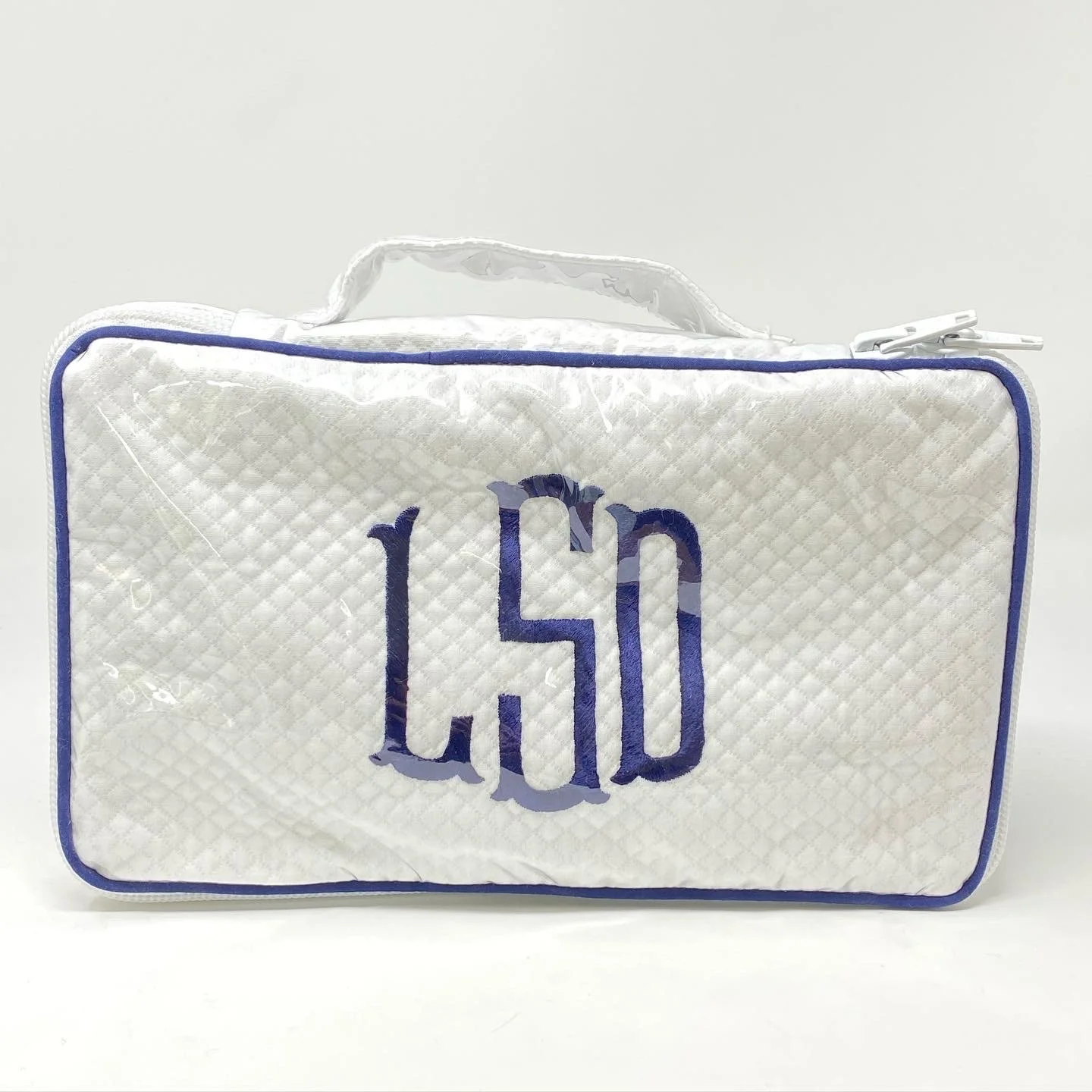 Handled Brush Case in lavender pinstripe with Matt appliqué