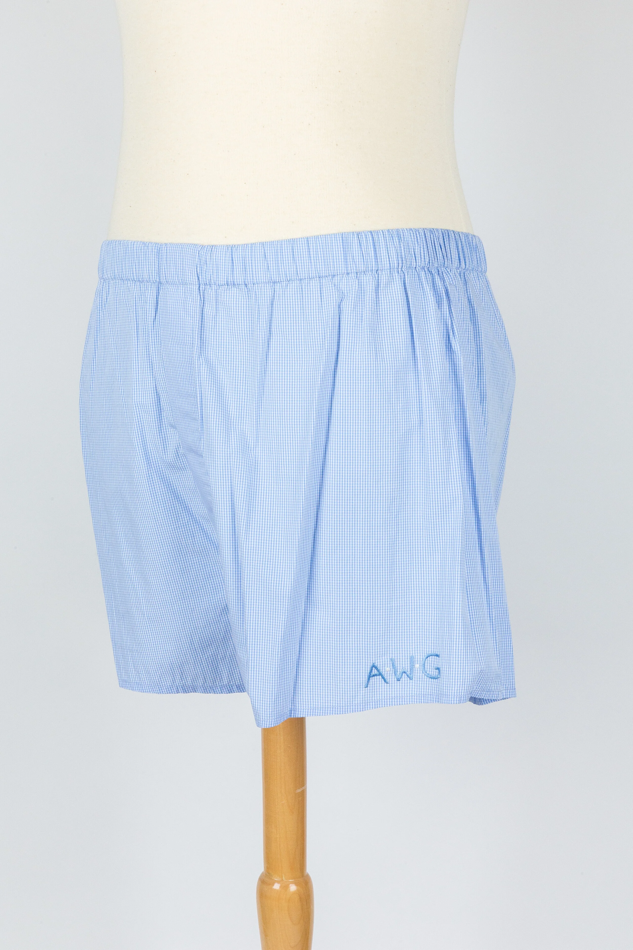 Men's boxer in mini blue gingham with Capital with Dots monogram